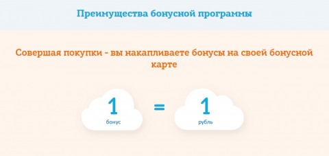 Один бонус равняется одному рублю. При этом в магазине можно оплачивать до ста процентов стоимости товаров бонусами.