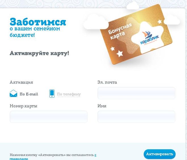 Активация бонусной карты на www korablik ru