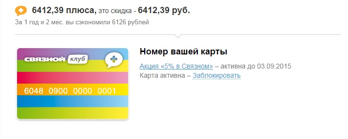 В интернете начисляется до 15% от стоимости чека, даже проведение грандиозных акций не лишает участника начисления баллов. За один плюс дается рубль реальной скидки. С получением карты начисляется 200 баллов в виде плюсов. Карта бесплатная и ее можно приобрести в любом магазине «Связной», а через 14 дней скидочные плюсы уже доступны к использованию. Условия начисления первых бонусов уточните у продавца. Картой пользуются при покупке и предъявлении на кассе или при заказе товара в интернет – магазине. На ней есть специальный номер – штрихкод, состоящий из 13 цифр.