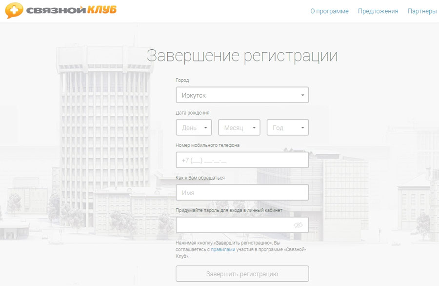 Для этого требуется заполнить анкетные данные и вбить в специальное поле номер карты связной клуб. Зарегистрироваться не сложно, вводится номер действующего мобильного, на который будут приходить специальные предложения и адрес электронной почты. К основным данным относятся: город проживания, дата рождения, имя. Обязательно придумайте пароль, который нужен для входа в личный кабинет.