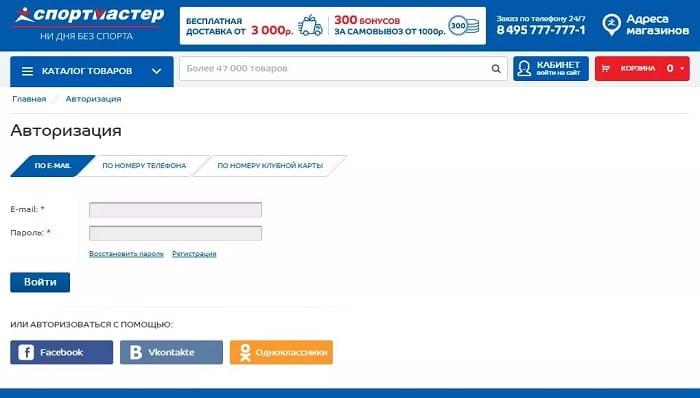 — узнать бонусы на карте Спортмастер посредством входа в личный кабинет. Вход происходит по номеру телефона, который выбирается в специальной вкладке этапы совершения данной процедуры таковы: ввести адрес официального сайта магазина, нажать на кнопку «Войти», выбрать способ входа – по номеру мобильного телефона, ввести его и пароль;