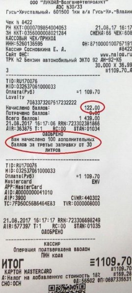 — когда оператор выдаст вам чек, в нем будет отражаться количество начисленных баллов;