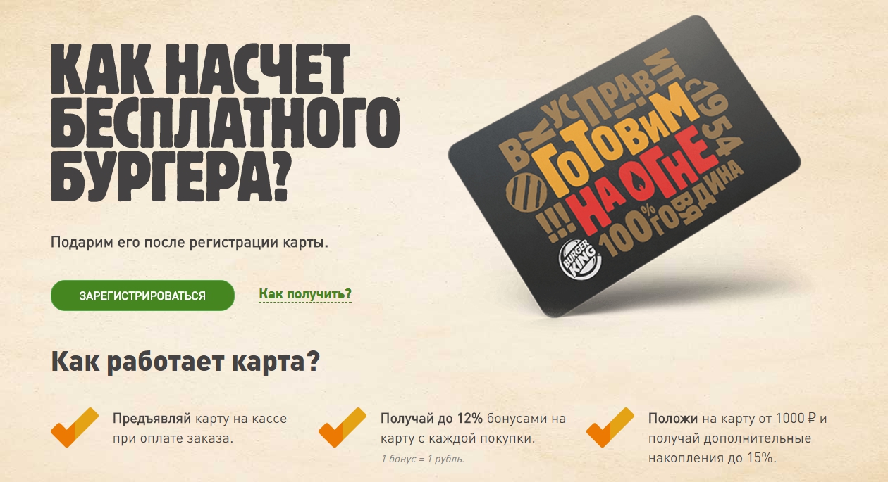 Только официальный сайт бургер кинг позволяет пройти процесс регистрации.