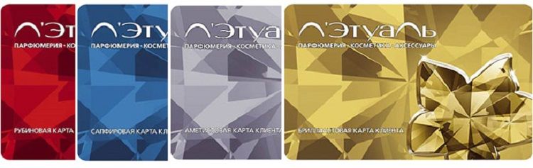 Дисконтные карты уже давно вошли в нашу повседневную жизнь. Известный магазин Летуаль предлагает бонусную лояльную программу скидок по системе накопления. Отличаются магазинные дисконтные карты летуаль по цветам, и получить одну из них будет приятно каждому покупателю, а главное выгодно. Это элитная сеть магазинов и каждая девушка хотела бы стать обладательницей клубной карты, ведь имея ее на руках можно приобретать брендовые косметические и парфюмерные средства достаточно недорого. Сеть магазинов предлагает разные виды карт летуаль, каждая из которых представлена определенной скидкой. У них есть названия, которые соответствуют определенному драгоценному камню и чем камень ценнее, тем выше скидка по дисконтной карте.