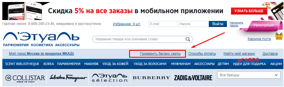 Чтобы проверить баланс можно зайти в личный кабинет на официальном сайте. Для покупателей представлена специальная вкладка, где по номеру дисконтной карты можно увидеть количество начисленных бонусов.