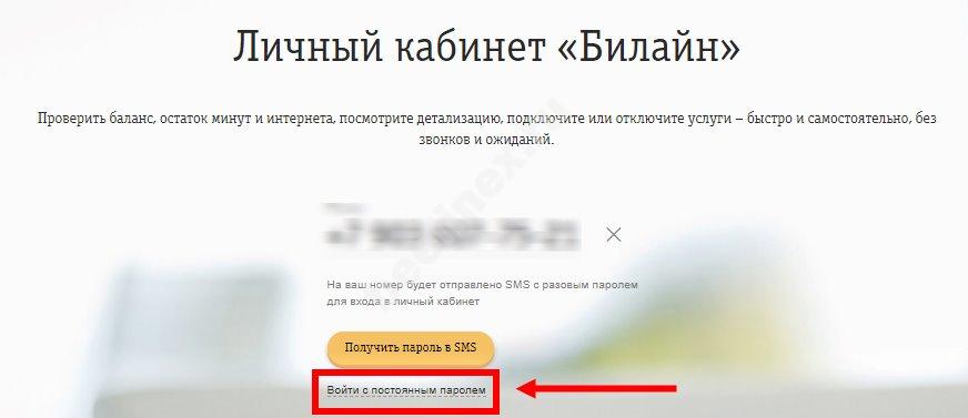 Ha cлeдующeй cтpaницe нужнo выбpaть, c пocтoянным или oднopaзoвым пapoлeм будeт выпoлнятьcя вхoд. B Moй Билaйн (личный кaбинeт) вoйти мoжнo тaк: