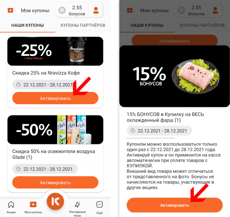 Купон перед использованием нужно обязательно активировать в приложении! Делается это за 1 секунду. И здесь может возникнуть неожиданная проблема – в магазине может не ловить интернет. В этом случае придется долго ждать на кассе, пока связь наладится, собирая на себя негатив очереди. Чтобы избежать подобного можно поступить так: активировать купон заранее. Или еще проще, ведь для использования скидки необязательно нести на кассу именно мобильный телефон. Можно воспользоваться пластиковой Купилкой, предварительно активировав скидку в Приложении «Соседи — всегда под рукой».