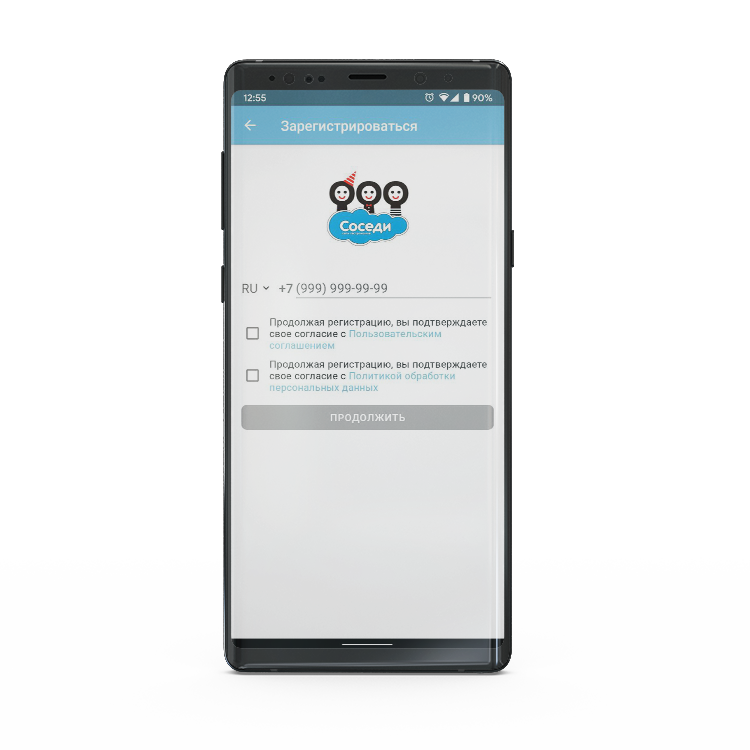 Для того, чтобы присоединится к программе лояльности «Клуб Соседи» необходимо установить приложение сети магазинов «Соседи» из магазина приложений вашей платформы и следовать приведенным ниже шагам.